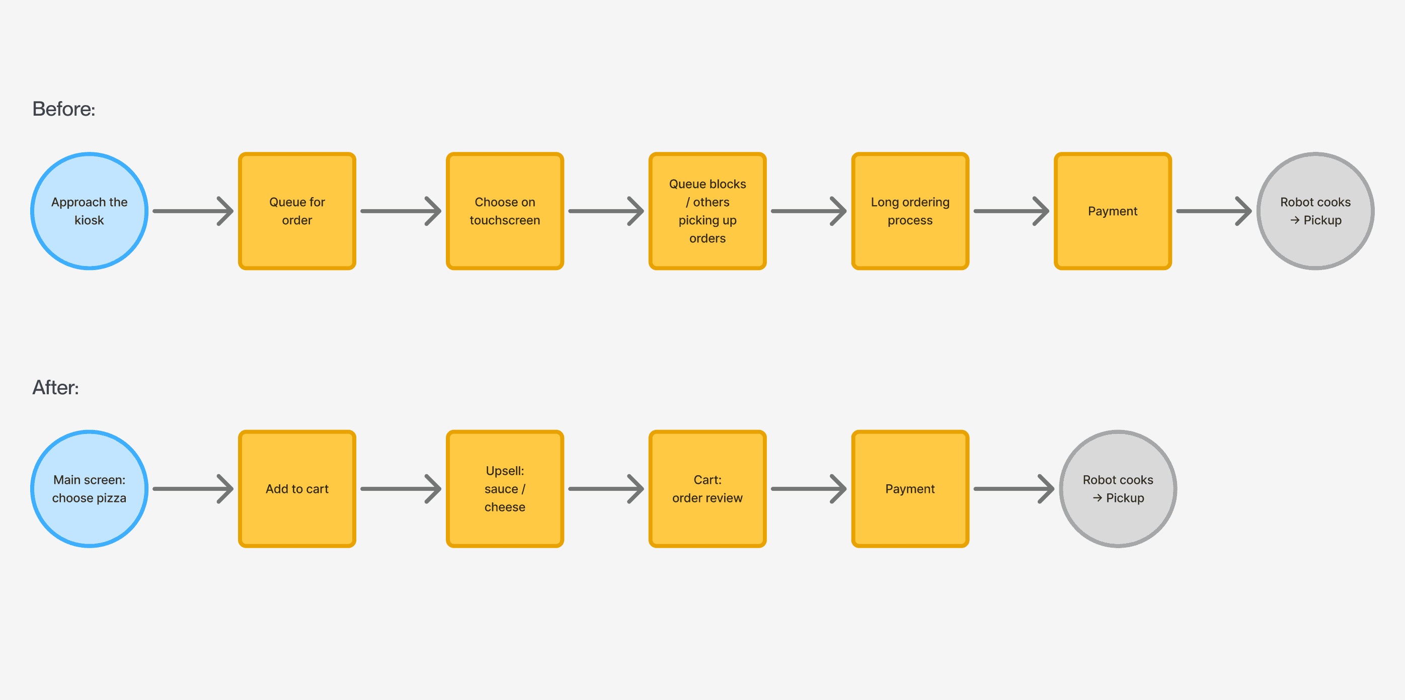 I analyzed existing kiosk ordering flows and compared them with mobile food ordering apps.